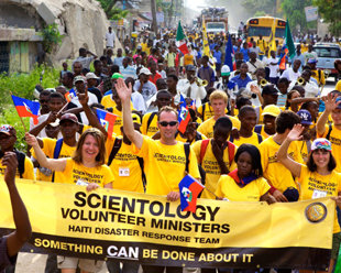 בין ראשוני המגיבים שבאו מכל העולם להגיש עזרה למדינה מוכת האסון היו 350 יועצים רוחניים מתנדבים של סיינטולוגיה. סיינטולוגים חכרו מיד מטוס מניו יורק כדי להוביל רופאים, אחיות וטכנאי חירום רפואיים להאיטי, מלווים ביועצים רוחניים מתנדבים שיספקו שירותי תמיכה לצוותים הרפואיים וכל סיוע אחר שיידרש.