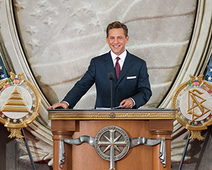 "אז כן, אתם מסתכלים על ההתגלמות בפועל של החופש והשוויוניות שבמקור היוו את ההשראה של האומה הזאת. כי, כן, הדת הזאת דוגלת בחיים, בחופש ובחיפוש אחר האושר. וכן, היא ניצבת כאן כיום בזכות החופש שהאומה הזאת נבנתה עליו – חופש הדת.