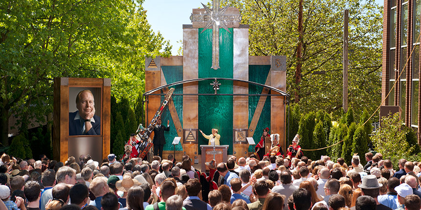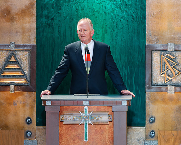 מר דיוויד מיסקביג', יושב ראש מועצת המנהלים של Religious Technology Center והמנהיג של דת הסיינטולוגיה השתתף בטקס ונתן וידוע לסיינטולוגים שהובילו את המבצע של בניית הארגון החדש.