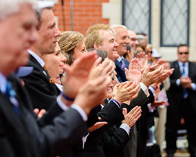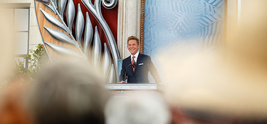 דיוויד מיסקביג', המנהיג הרוחני של דת הסיינטולוגיה, הנחה את טקס הפתיחה כדי לפתוח באופן רשמי את הארגון האידיאלי החדש. בנאום החניכה שלו, מר מיסקביג' דיבר על המשמעות של הפתיחה והאפשרויות שינבעו מכך לכל אוקלנד.