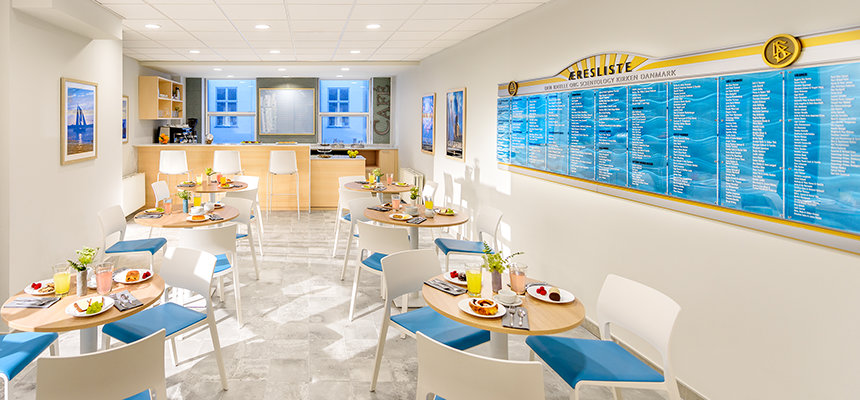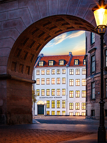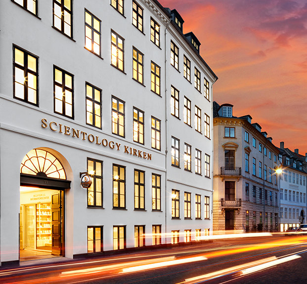 ארגון הסיינטולוגיה החדש של דנמרק נישא לגובה חמש קומות ונמצא במרחק של צעדים ספורים בלבד מהסטרוגט, שבו עוברים מדי יום 75,000 הולכי רגל. בתור שכזה, הוא משמש כמוקד של העיר המרכזית למספר מיזמים הומניטריים שזכו להוקרה של הקהילה האזרחית בקופנהגן.