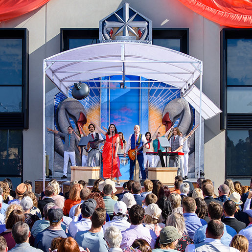 באווירה זו הפתיחה החגיגית של הארגון החלה עם ההמנון הלאומי המסורתי של אוסטרליה, "Advance Australia Fair" (צעדי קדימה אוסטרליה הנאה), ואחריו ביצוע נמרץ של שיר הניצחון המקומי, שביטא את רוח היוזמה הנחושה של הסיינטולוגים בפרת'.