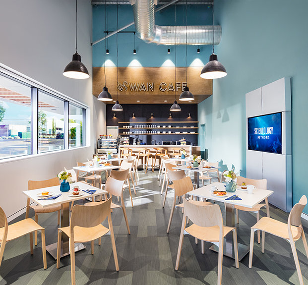 הקפיטריה מציעה מקום מפגש למשתתפים באירועים, כמו גם לחברי הקהילה בהפסקות בין שירותי ה-Scientology שלהם.