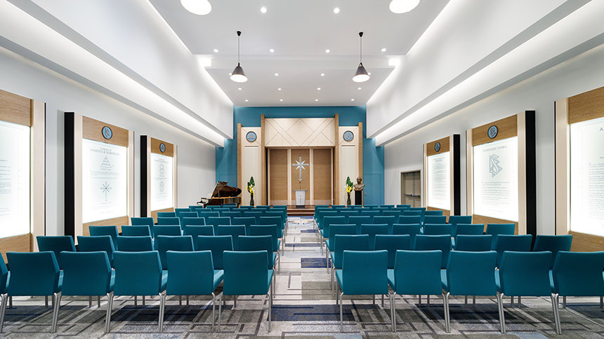 הקפלה של פרת' היא מרחב מרשים בגובה שתי קומות עם תאורה שקועה מסביב לקיר המקיף אותה, שיוצרת אשליה של תקרה מרחפת מעל. היא משמשת להתכנסויות קהילתיות של Scientology שכוללות שירותי סופשבוע, חתונות וטקסים להענקת שם, כמו גם שפע של אירועים לכל הקהילה כגון נשפים, סמינרים וסדנאות, שפתוחים לבני כל הדתות.