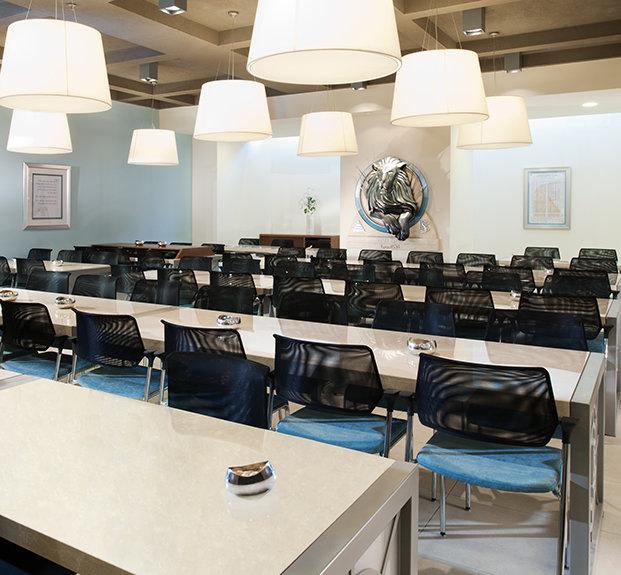 מבין הפרטים המיוחדים ששוקמו באופן נפלא באתר ההיסטורי הזה נמנה שעון הזכוכית בקומת הביניים הצופה על שדרת ירושלים והתקרה האליפטית של האודיטוריום. החזית בסגנון הבינלאומי וארט-דקו גם הושבה להדרה המקורי, מחלונות הוויטראז' והסורגים המעוטרים לשלט הידוע "אלהמברה" שמפאר את המגדל האייקוני.