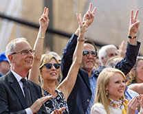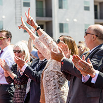 מר דיוויד מיסקביג׳, יושב-ראש מועצת המנהלים Religious Technology Center הנחה את טקס החניכה מלא החיים ביום שבת, ה-19 במרץ. הקהל נעמד על רגליו שוב ושוב במחיאות כפיים סוערות במהלך נאום החניכה שלו.