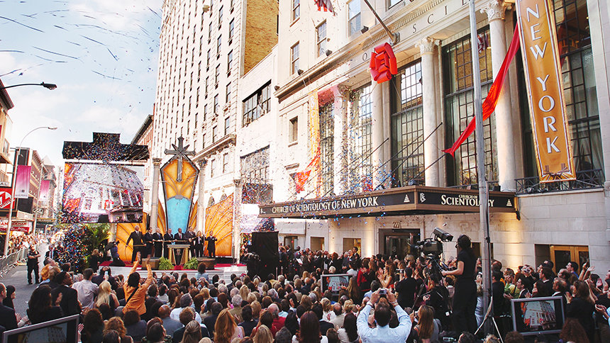ארגון הסיינטולוגיה בניו-יורק, ליד טיימס סקוור, היה מתנה מהתאחדות הסיינטולוגים הבינלאומית לאנשי ניו-יורק בתור הוקרה לאומץ ולרוח שלהם אחרי אסון התאומים ב-2001.