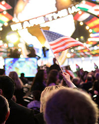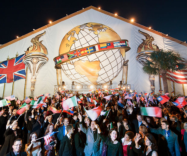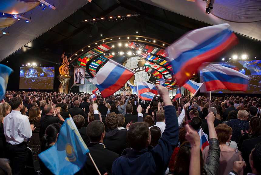 יותר מ-6,500 סיינטולוגים, המייצגים כ-50 מדינות, מתקדמים לעבר האולם הגדול כדי להשתתף בחגיגה.