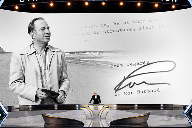 "ברוכים הבאים לערב שבו אנחנו חולקים כבוד למייסד שלנו. לא שמעולם לא הכרתם אותו. אבל מכיוון שזה ערב בו נקיים את גינוני הטקס, בואו נתחיל עם כמה נתונים בסיסיים. בשנה האחרונה נפתחו ארגוני Scientology חדשים בכל איזור גיאוגרפי, מתקנים חדשים לצעדי ענק על פני יבשות שלמות, וכמובן, שנה חדשה – 2019 – שלעולם לא תישכח, למרות שהיא רק החלה. בקיצור, ההתרחבות שלנו מדהימה, וכמובן, הכול נובע מהחיים והמורשת של אדם אחד – ל. רון האברד".