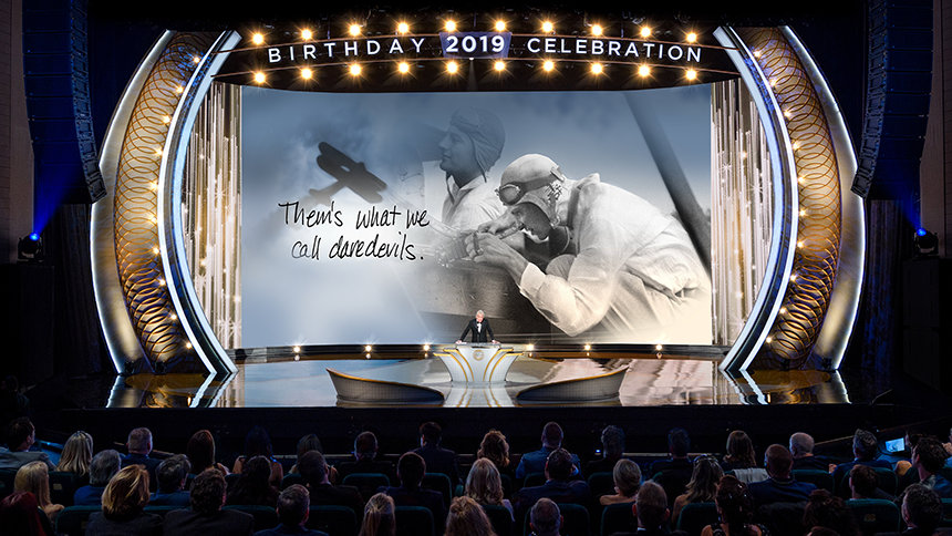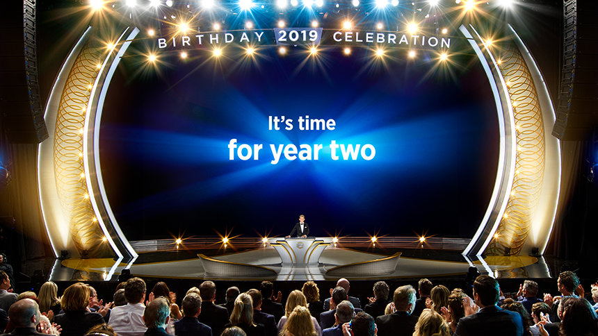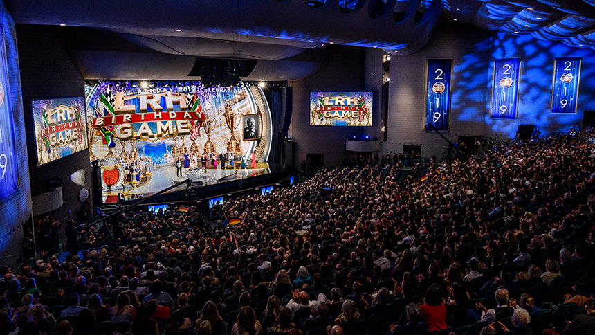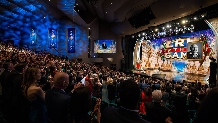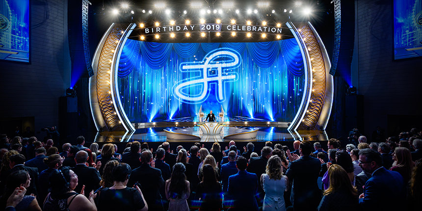 לאחר מכן הערב עבר קדימה במהירות אל 2019 ולטקס הענקת פרסים שהדגיש את רוח הערב – חגיגה של התרחבות. לפני יותר מארבעים שנה, שאלו את ל.ר.ה מה הוא רוצה ליום ההולדת שלו. תשובתו היתה המתנה של ארגונים ומרכזים של Scientology שפורחים ומשגשגים כשהם מספקים חופש רוחני. עם השנים, ארגוני Scientology ברחבי העולם הפכו את זה למשחק, כשהם מתחרים באחת מארבע ליגות, במרוץ לקו הסיום. השנה, כל אחד מהאלופים שהעפילו אל קבוצת המנצחים שבר שיאים בביצועים שלו. אלה הם המרכז של Scientology באולם, גרמניה; הארגון של Scientology בשטוטגרט, גרמניה; הארגון המתקדם וסיינט-היל בריטניה; ומשרד הקישור היבשתי של אירופה.