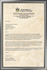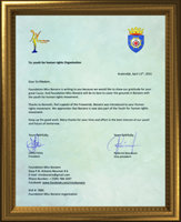 - הכרת תודה לארגון הסיינטולוגיה על תוכנית החינוך בנושא זכויות האדם שהועברה לכוחות ההגנה של האי סיינט-קיטס, בה נאמר "נוער למען זכויות האדם עושים הבדל של שמיים וארץ."