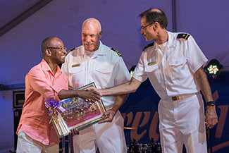 - הצי ההולנדי המלכותי של ארובה שחלק כבוד ל-Freewinds עבור "27 שנים של שירות".