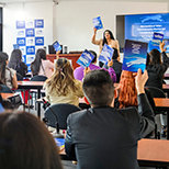 הקהל קם בתשואות רועמות לשמע החדשות על צוותי המנהלים שמסיימים בקרוב את תוכנית ההכשרה וחוזרים לארגונים שלהם.