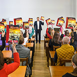 מר מיסקביג' מתחיל מצגת מרתקת של שעתיים וחצי אשר כולה על הישגים – שמציגה סיפורים מלאי חיים על הצמיחה העצומה של הדת במהלך השנה האחרונה.