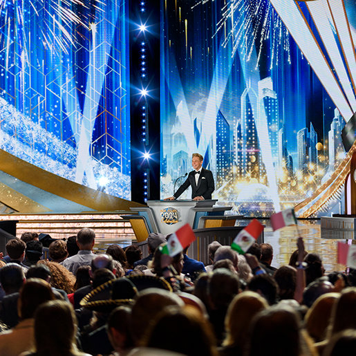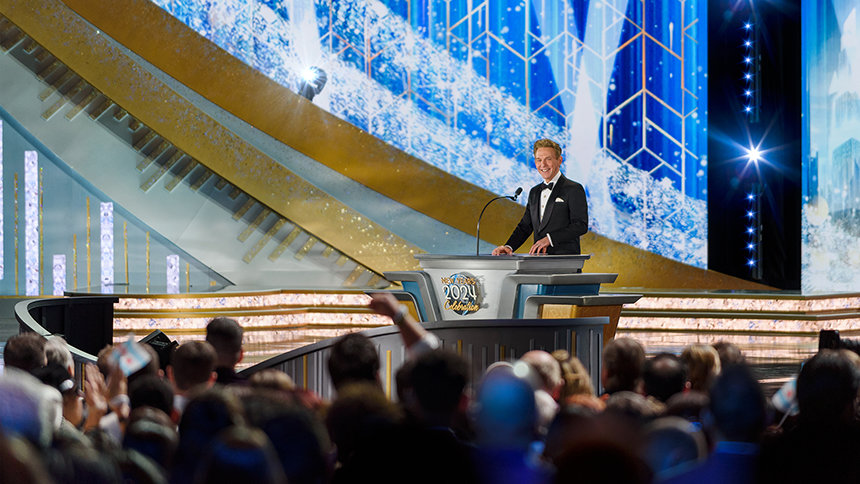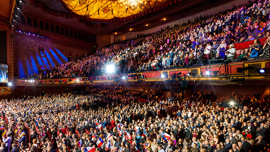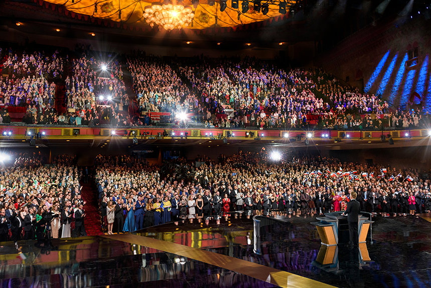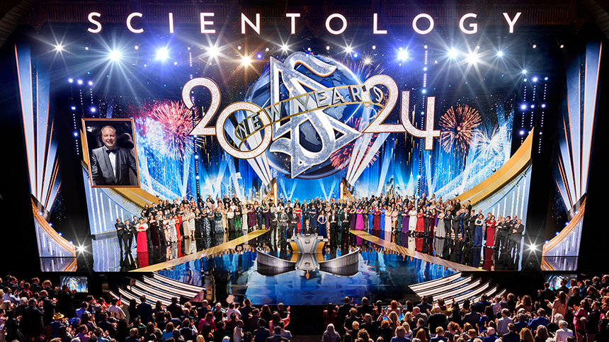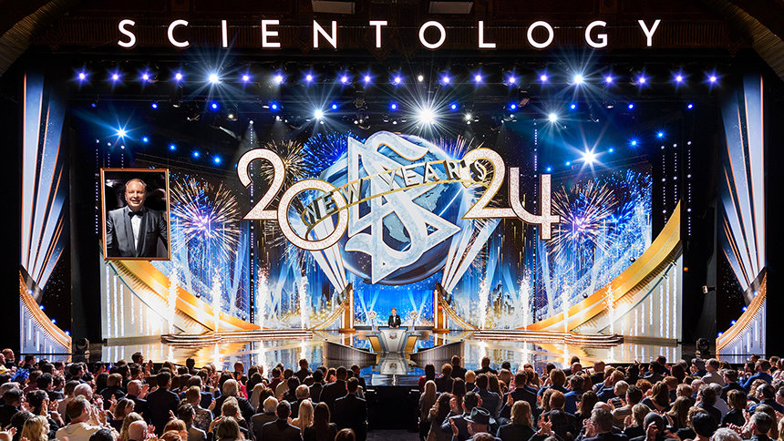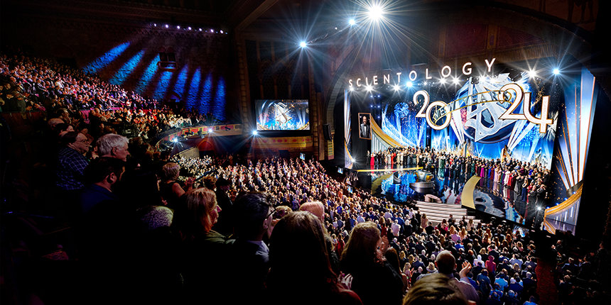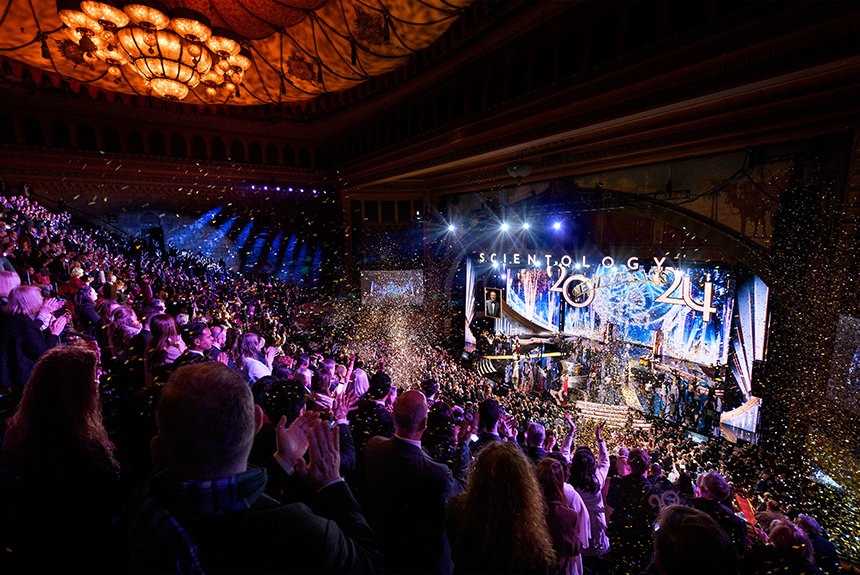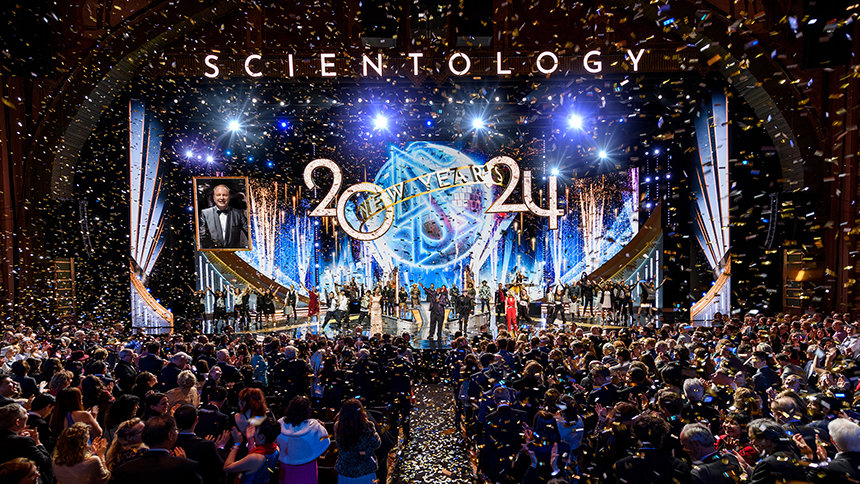הפאר של אודיטוריום השריין בלוס-אנג'לס מכין את הרקע כשקהל רב של יותר מ-6,500 סיינטולוג'יסטים ואורחים מתכנס לחגיגת השנה החדשה המרהיבה של דת ה-Scientology.