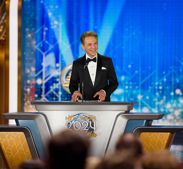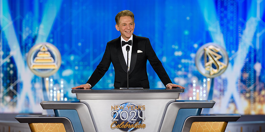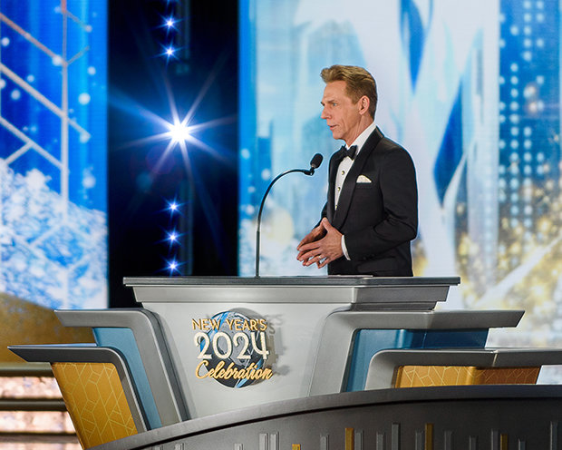 "כנהוג, אירוע השנה החדשה שלנו הוא הערב שבו אנו מסיירים בסקטורים השונים של יישום הטכנולוגיה של ל. רון האברד", פתח מר מיסקביג'. אחרי סקירה מקדימה מלהיבה ומרתקת של מה שצפוי להיות בערב עוצר הנשימה, הוא הוסיף, "אנחנו לא רק מרימים כוסית לשנה שחלפה. אלא, אנחנו הולכים להצית דלק טילים מוצק ולהעיף את הגג מעל האודיטוריום הזה כשאנחנו ממריאים לשנה החדשה 2024!"