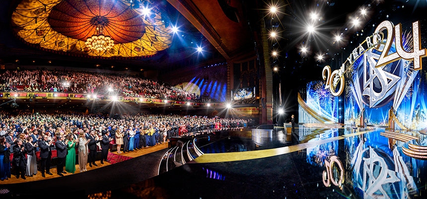 הפאר של אודיטוריום השריין בלוס-אנג'לס הכין את הרקע לערב אלגנטי ומלהיב כאשר יותר מ-6,500 סיינטולוג'יסטים ואורחים התכנסו לחגיגת השנה החדשה המרהיבה של Scientology.