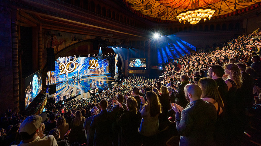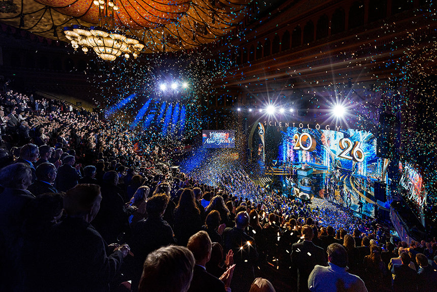 יותר מ‑6,500 משתתפים הופכים את האודיטוריום לחגיגה אפית כשחגיגת השנה החדשה יוצאת לדרך עם תנופה מובהקת של Scientology.