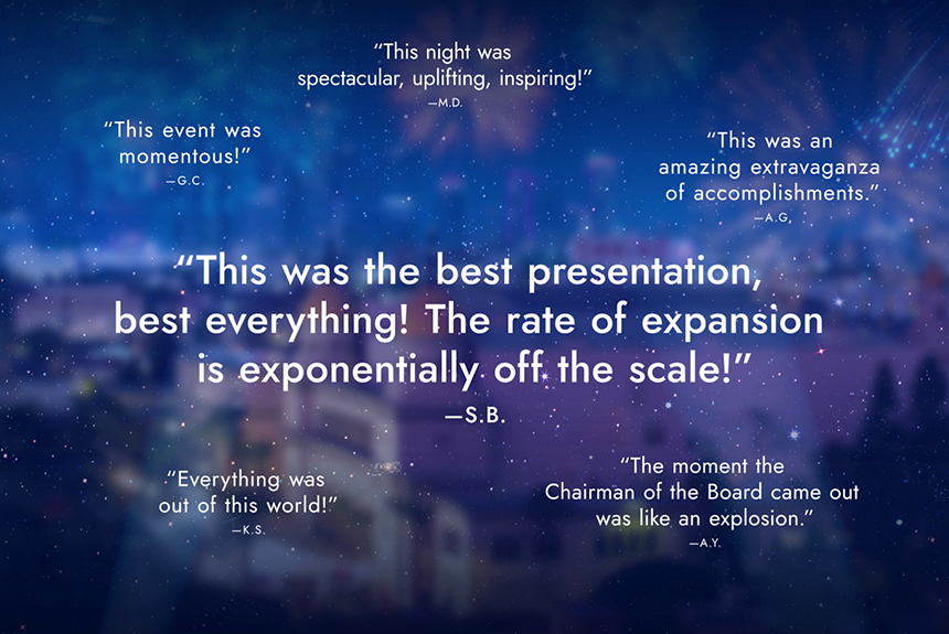 כבר מההתחלה, הערב גילם את סימני ההיכר של חגיגת השנה החדשה של Scientology – אלגנטיות, ציפייה ותחושת מטרה. בלבוש ערב רשמי, יותר מ‑6,500 אורחים מילאו את האולם ההיסטורי כדי לחלוק כבוד להצלחות המשמעותיות מ‑2025, בעודם מפנים את מבטם אל אופק אינסופי הנגלה לנגד עיניהם.