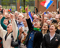 "כאזרח צרפת, אני בהחלט רואה בזה חובה וכבוד לשאת הלאה את המורשת הזאת של זכויות האדם. והמסורת שלכם של שירות כוללת חלוקה של לא פחות מ-400,000 עלוני 'זכויות האדם' לכיכרות העיר, לתחנות הרכבת ולכל רחבי צרפת. בפעולותיכם בקהילות שלנו, אתם עוזרים ליצור חברה שהיא לא אנוכית, אלא חברה שבה אנשים מכבדים זה את זה".