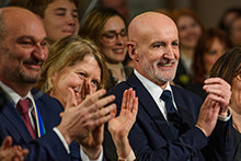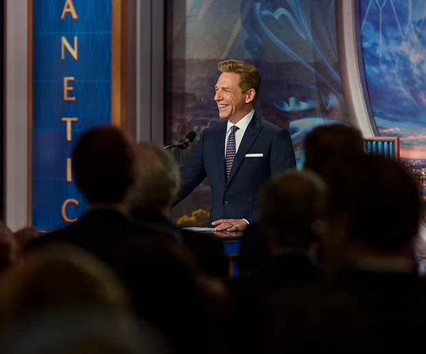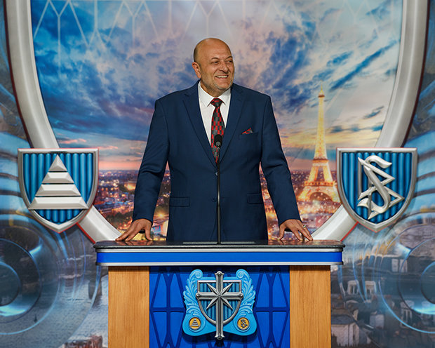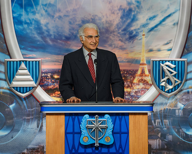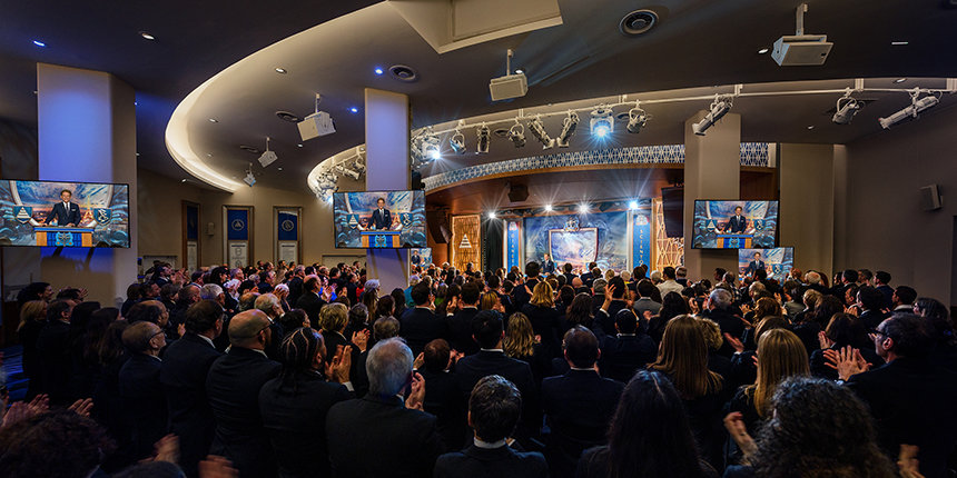 אבל התשואות החזקות ביותר, גם בפנים וגם בשטח בחוץ – שם אלפים נוספים צפו באירוע על מסכי ענק באוהלים ענקיים שהכילו את הקהל הרב – היו עבור מר דיוויד מיסקביג', יושב-ראש מועצת המנהלים Religious Technology Center, כשהוא חנך את המרכז החדש והמרשים הזה.