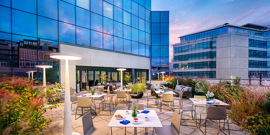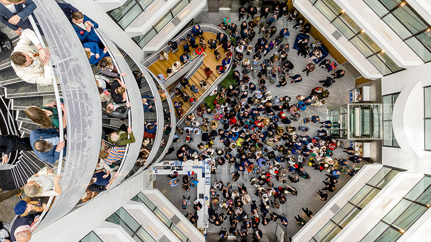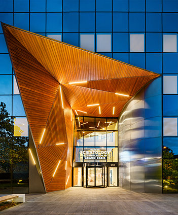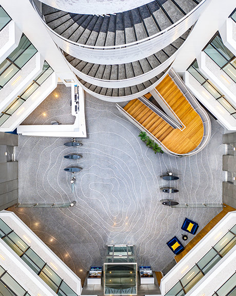 מעבר למעטה החיצוני הזוהר ולשער העץ הגיאומטרי המודרני, אולם המבואה הנישא לגובה של המבנה משקף את הנוכחות של עץ סקויה מקסים. "טבעות צמיחה" ששובצו אחת אחת ברצפת הטרצו ומעקה מעגלי שמעוטר בדוגמת עלים מרחיבים את מוטיב הסקויה כאשר אורחים עושים את דרכם במעלה המרחב שגובהו 15 מטרים השטוף באור טבעי מחלון הסקיילייט העצום שמעל.