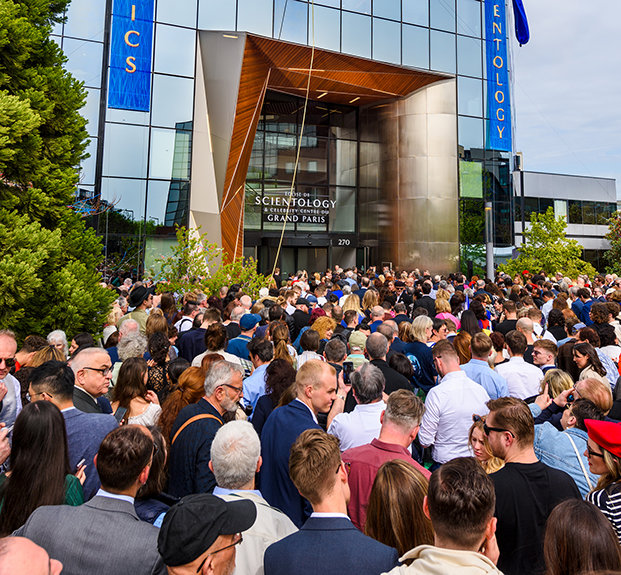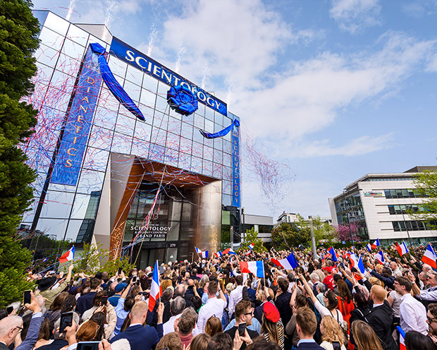 באחר צהריים נפלאים ביום שבת, לאחר שהיה שנים בהתהוותו, הקירות והרצפה של האודיטוריום המפואר החדשני של הארגון רעדו משמחה ועליזות כאשר נכבדים מהתאחדות הסיינטולוג'יסטים הבינלאומית (IAS) שנסעו מכל רחבי העולם התכנסו לאירוע הזה של פעם בחיים. הם הצטרפו ל-Humanitarians צרפתים ולהמונים מאותם פריזאים בולטים שמאמציהם הובילו להישג המהמם הזה, שעכשיו הוא אוצר לכולם.